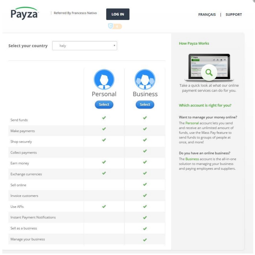 Payza è uno dei processori di pagamento più utilizzati in internet, affidabile, preciso e piuttosto veloce viene anche accettato da molti business online per effettuare i depositi o ritirare i guadagni realizzati.